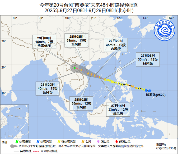 “博罗依”将于9月28日白天以台风级经过海南岛南部近海