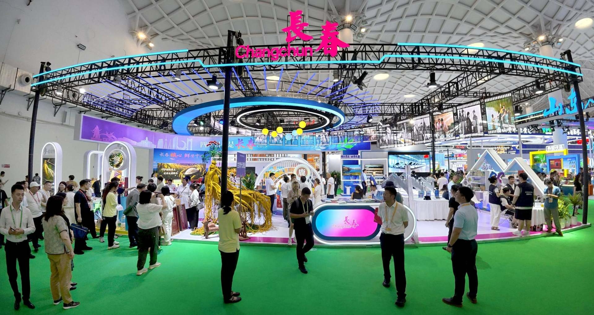 长春通过打造200㎡全开放式环岛主题展馆、五大特色板块、携手300余款精选优品亮相消博会。