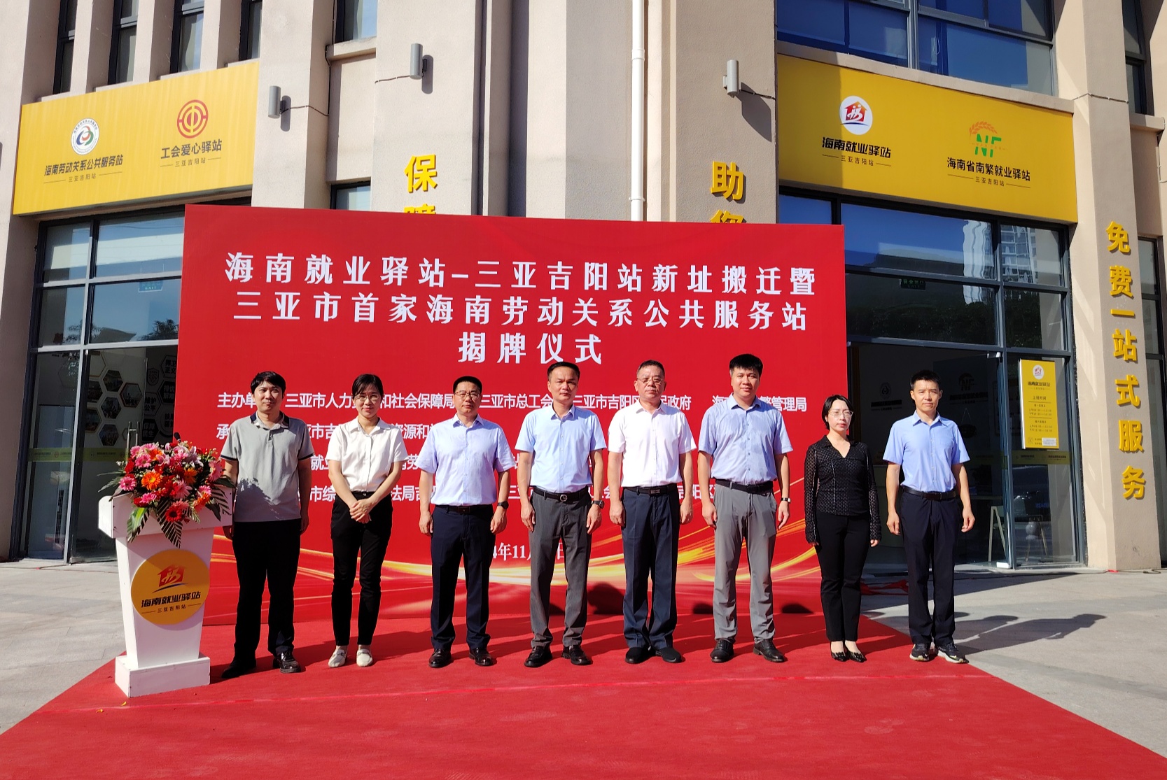 央广网三亚11月15日消息(记者 付美斌)11月15日,海南就业驿站-三亚吉阳站新址搬迁暨三亚市首家海南劳动关系公共服务站揭牌仪式举行。