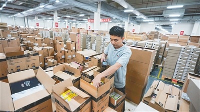 海口:免税商品分拣转运忙