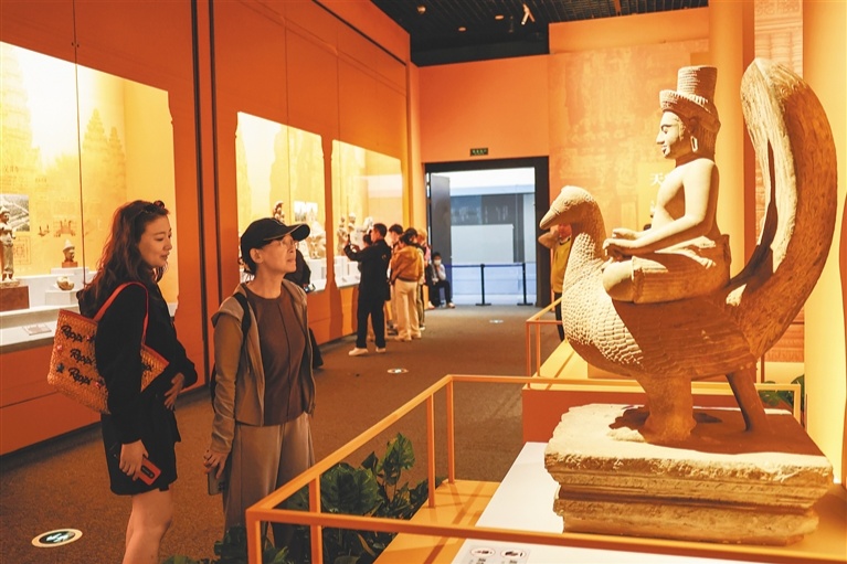 该展展出来自柬埔寨国家博物馆的石雕、陶器等122件(套)精美文物。