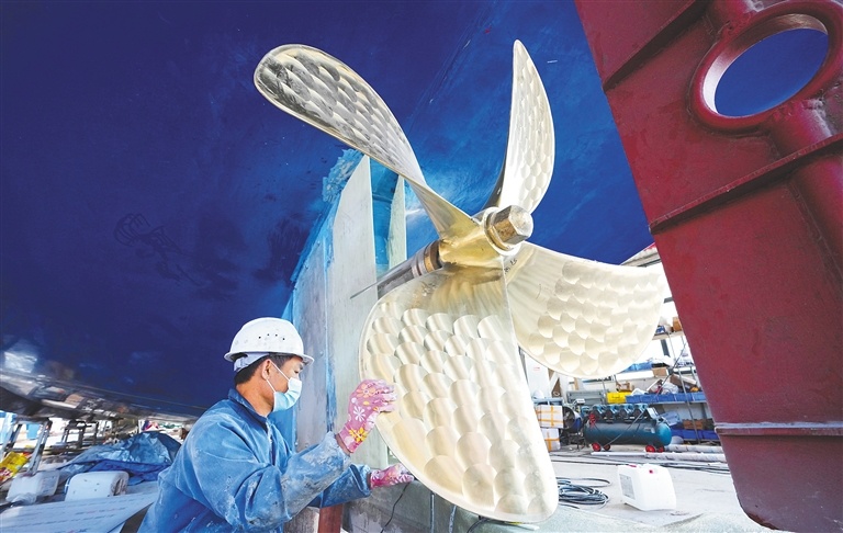 工人在位于三亚市海棠区的蜈支洲岛旅游区配套工程现场施工。