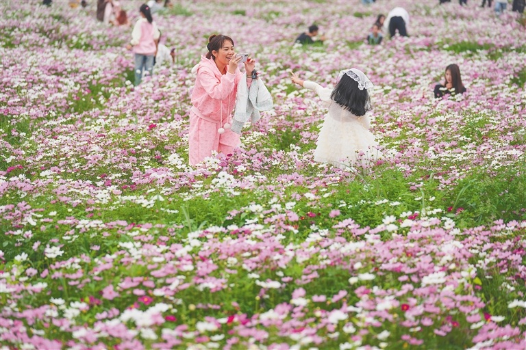 海南国际花卉产业园,大片格桑花迎冬绽放。