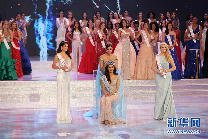 第66届世界小姐冠军为新当选的印度小姐带上桂冠。新华网 纪惊鸿 摄 2017年11月18日,第67届世界小姐全球总决赛在三亚体育中心落幕。作为海丝盛典·2017三亚国际时尚周的压轴大戏,这是时隔两年后,世界小姐全球总决赛又一次来到中国三亚。最终,来自印度的Manushi CHHILLAR获得第67届世界小姐全球总决赛冠军。 -