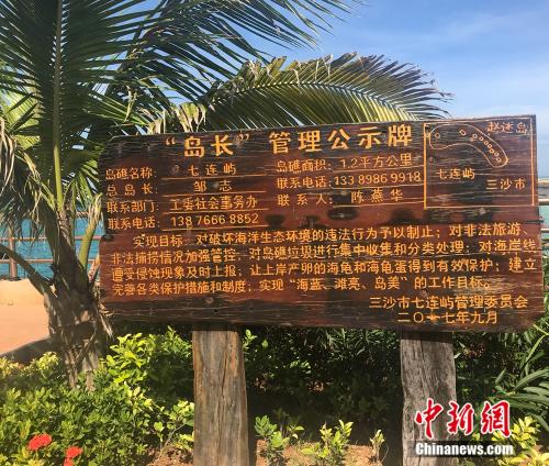 “去年9月以来,三沙在七连屿试行‘岛长制’,我是总岛长,下面还有7个分岛长……”海南省三沙市七连屿管理委员会主任邹志这样介绍自己的身份。