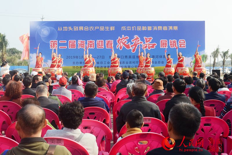 人民网海口1月23日电(樊欢迪)1月23日上午,第二届海南迎春农产品展销会在海口五源河体育场热烈开幕,展销会持续时间至1月27日。海南省总工会党组书记、常务副主席王全,海南省总工会副主席马东旭,海南省农业农村厅厅长许云出席开幕仪式。