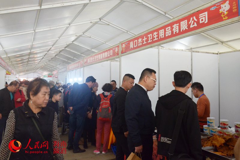开幕式上欢快的音乐和精彩的舞蹈让现场笼罩在一片喜气洋洋的氛围中,上午 9:30,五源河展销会现场已经聚集大量前来逛展的市民。据了解,现场参展位为 160个,主要展销海南农产品类、海洋食品类、美食和粮油糖酒饮料类,参展产品达几百种,还有豪猪肉、竹狸肉等特色年货。