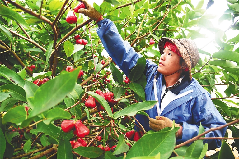 茄苪村村民在莲雾基地采摘莲雾。海南日报记者 张期望 通讯员 刘平 摄