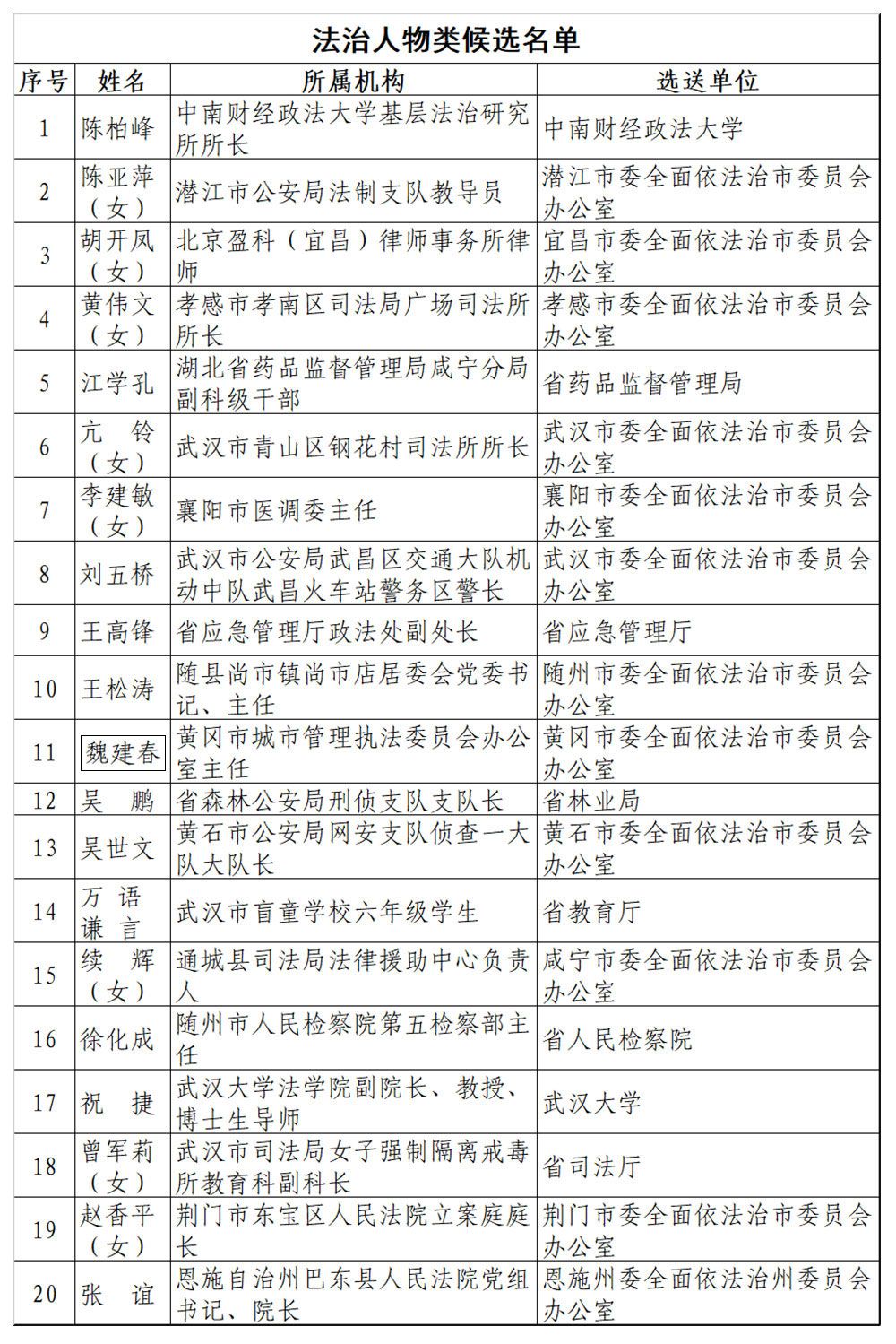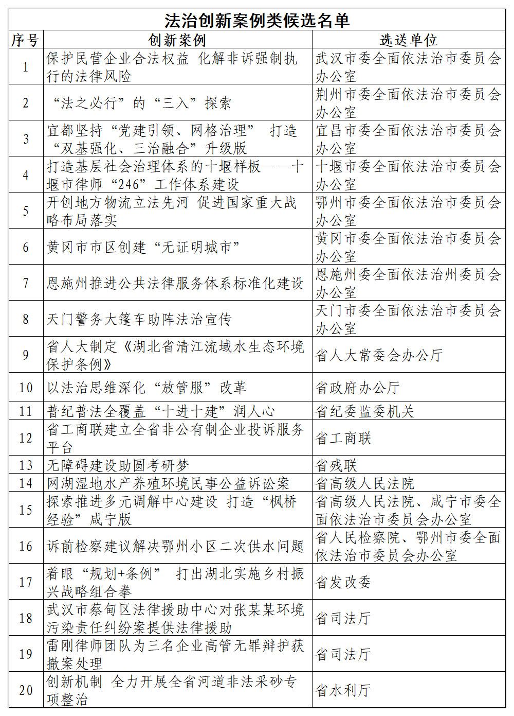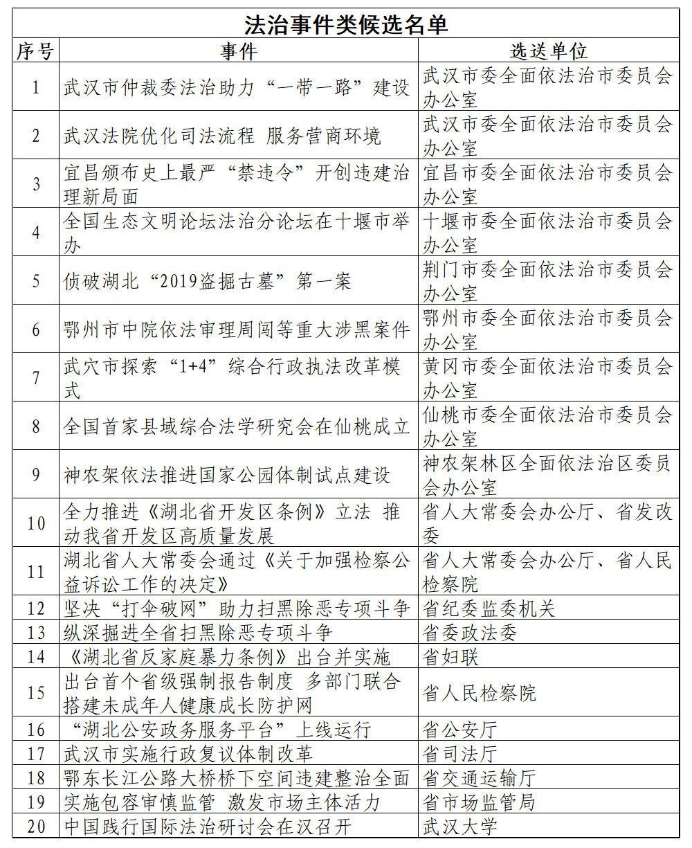 附:2019年度“湖北省十大法治人物 十大法治事件 十大法治创新案例”候选名单。