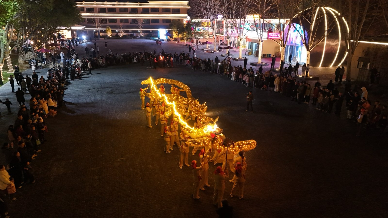 2月23日晚,湖北省十堰市竹山县桃花源街区上空流光溢彩,2000架无人机腾空而起,以天为幕、以光为笔,在15分钟的璀璨光影中,为当地群众呈现了一场科技与文化交融的新春视觉盛宴。