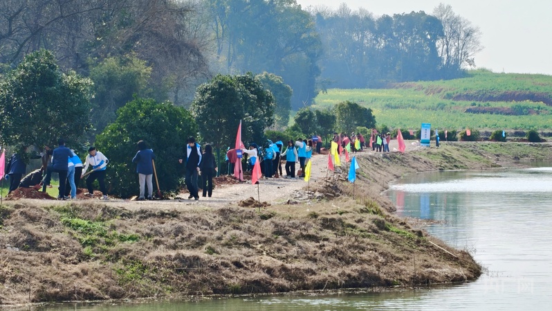 3月12日,咸宁市章家湖新绿萌发。时值第48个植树节,“爱我千湖 绿满荆楚”河湖保护暨义务植树志愿服务活动在此启幕。上午9时,来自湖北省水利厅、湖北省林业局、咸宁市及咸安区相关单位的百余名志愿者齐聚湖畔,参加启动仪式。