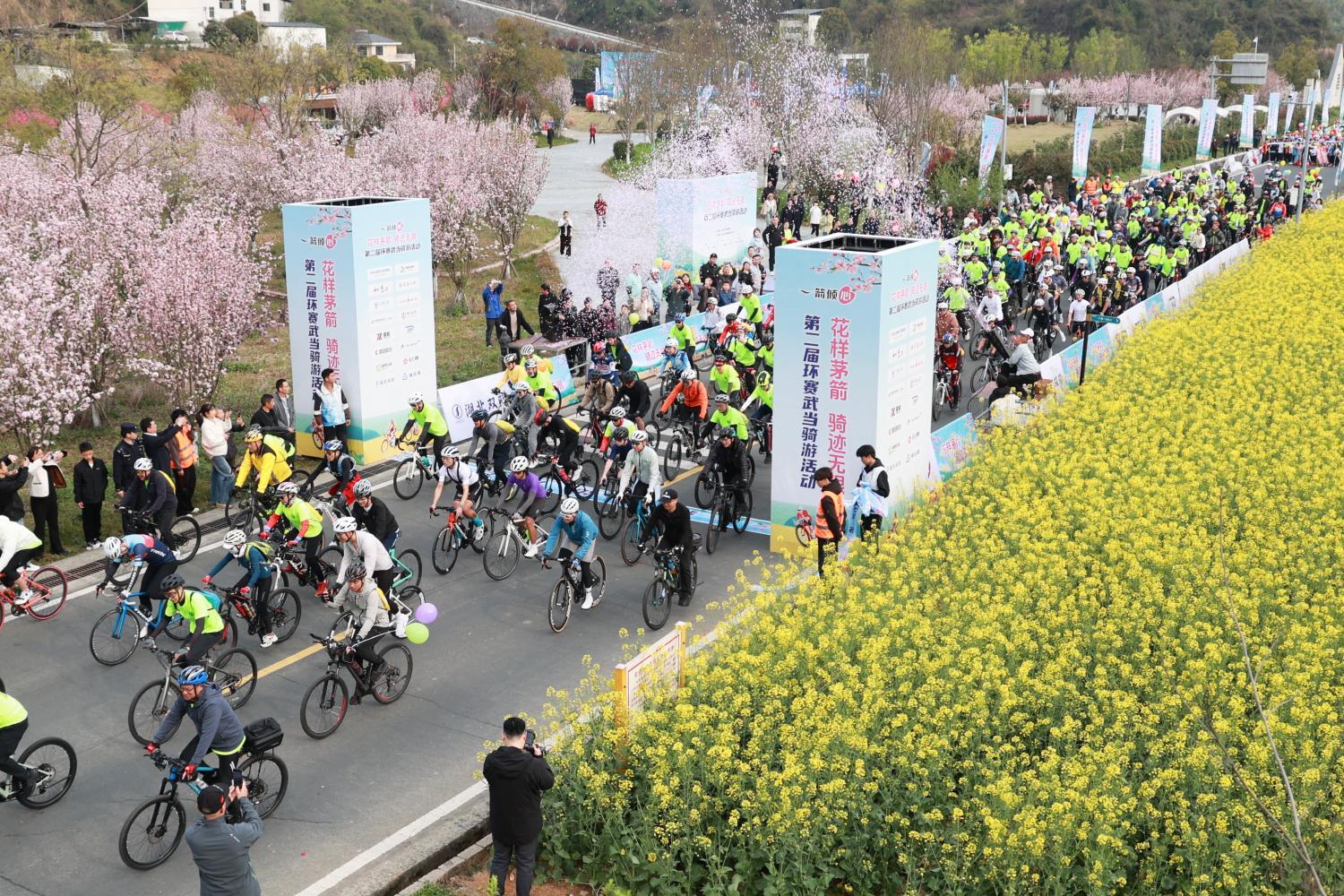 3月29日上午,以“花样茅箭·骑迹无限”为主题的湖北省十堰市茅箭区2026第二届环赛武当骑游活动在该区茅塔乡一箭倾心广场启动。来自全国各地的400余名骑手与300余名跑步爱好者齐聚一堂,在春日山色中展开角逐,共同感受生态之美与运动之趣。