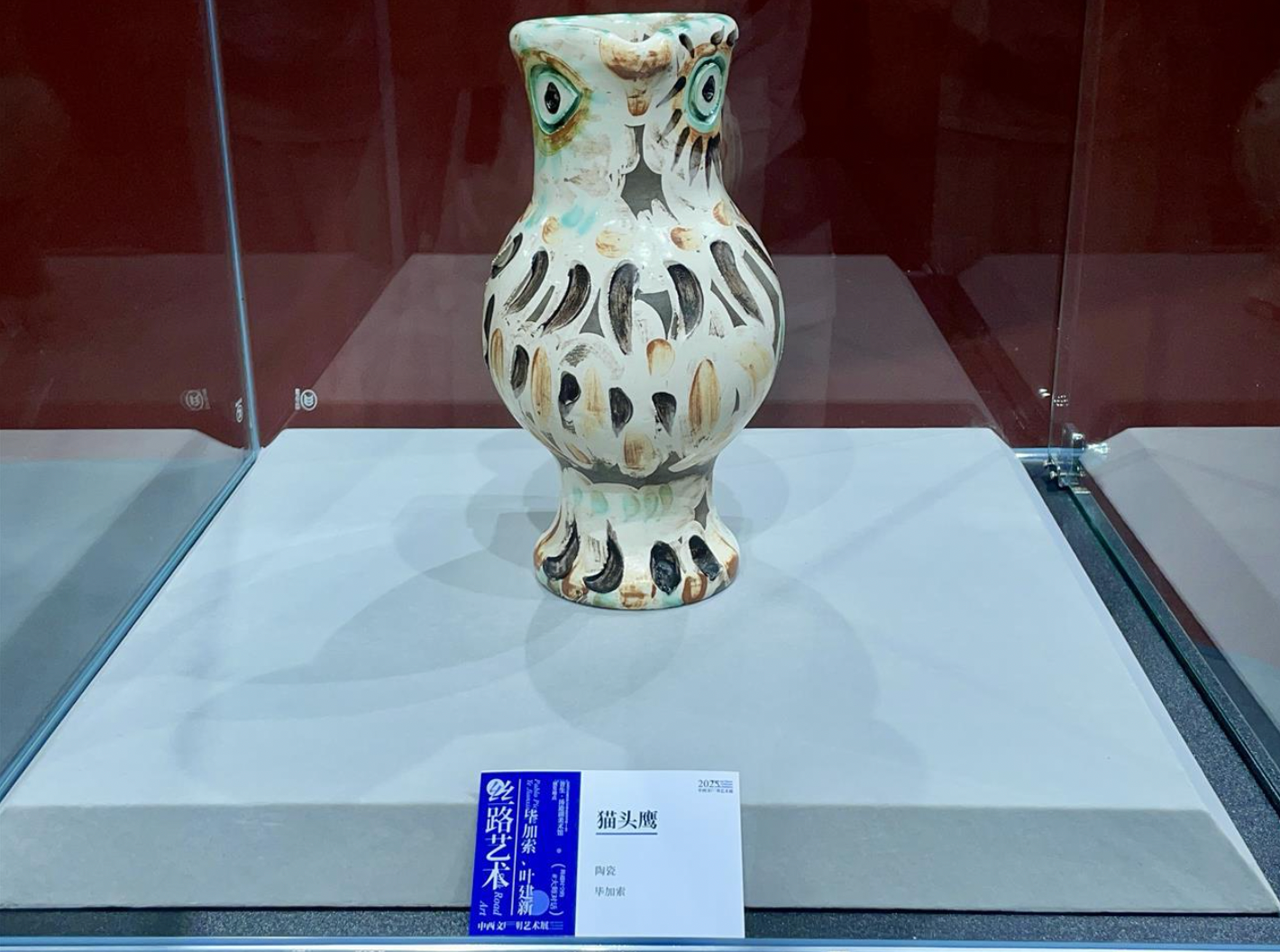 8月26日,毕加索真迹陶土雕塑《猫头鹰》首次走出都市艺术场馆,进驻武汉江夏区乌龙泉街达芬奇美术馆,与中国陶瓷设计艺术大师叶建新教授的《水墨琉璃》作品共同展出。