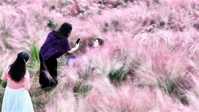 近日,郧西县天河口湿地公园的粉黛乱子草正处于盛花期,游客在花海中感受秋日浪漫。