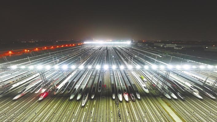 2026年春运于2月2日启动。1月28日凌晨,华中地区规模最大的动车检修基地——武汉动车段内一片繁忙,一列列检修后的动车组列车整齐排列,等候开赴春运一线,现场如同“万箭齐发”,十分壮观。