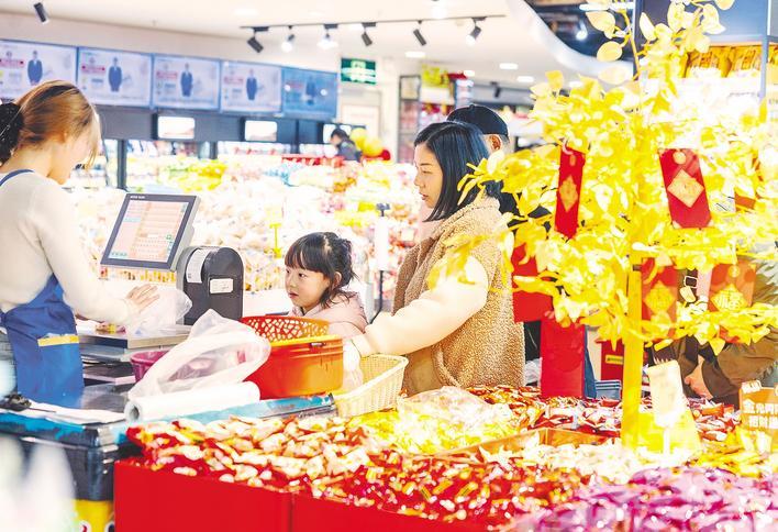2月13日,武汉中商徐东平价广场,前来采购年货的市民络绎不绝。