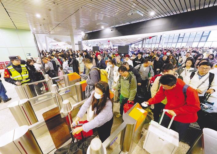 2月23日,春节假期最后一天,武汉铁路迎来返程客流最高峰,武汉客运段当日开行列车327.5对,创历史新高,平均不到2.2分钟发送一趟。