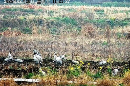 2月28日,湖北丹江口库区省级湿地自然保护区管理局在对郧阳区安阳片区进行视频巡护时,惊喜地发现50只国家二级保护动物灰鹤在此集结。这是丹江口库区湿地有监测记录以来,灰鹤种群数量最多的一次。