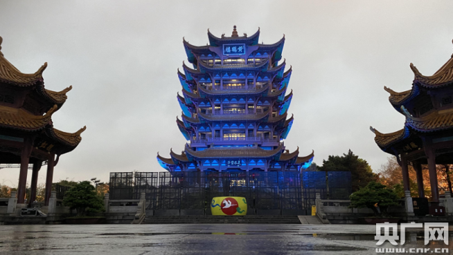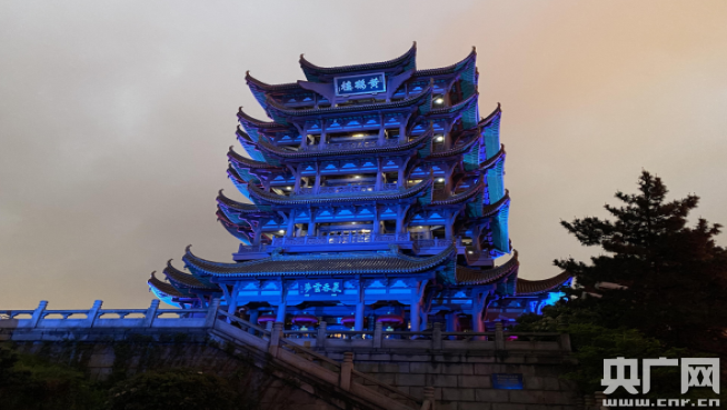 图为:4月2日晚黄鹤楼为“星星的孩子”点亮蓝灯 央广网发 记者王超摄