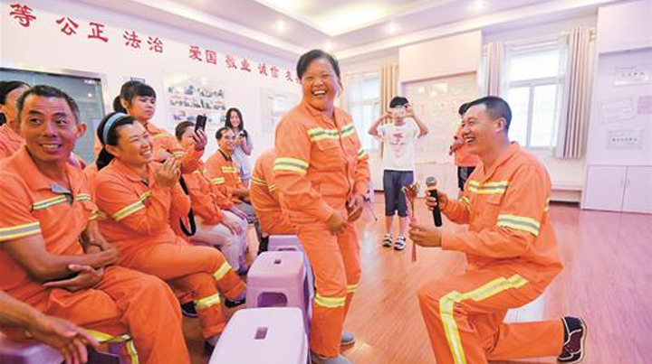唱着情歌拉着手,赠送玫瑰表心意,拿出老照片一起分享甘苦幸福的日子。昨日,武昌城管大桥清洁队8对环卫夫妻,用他们的浪漫,度过了一个别致的七夕节。