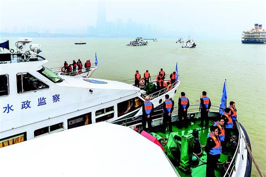 12月26日,武汉市水务局水务执法总队联合洪山区、新洲区、江夏区、江岸区、汉阳区、经开区水务局河道采砂执法队,出动7艘执法艇在长江主轴水域开展巡江执法行动,确保无非法采砂船偷采江砂。