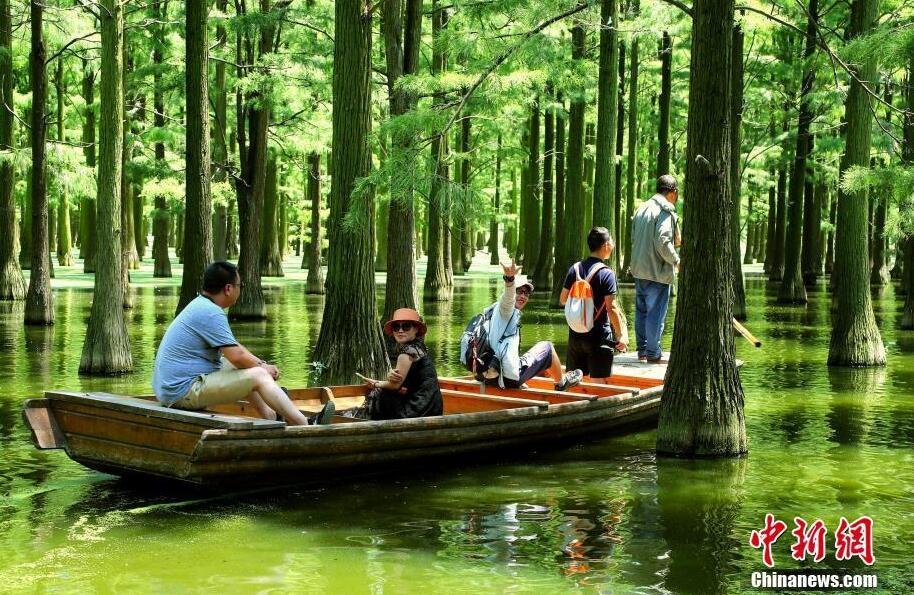 6月26日,武汉市新洲区的涨渡湖湿地,满目翠绿的池杉。位于武汉市新洲区东南端的涨渡湖,紧邻长江,是典型淡水湖泊自然保护区、也是亚太地区珍稀候鸟迁徙中转通道和越冬场所。中新社记者 张畅 摄[详细]