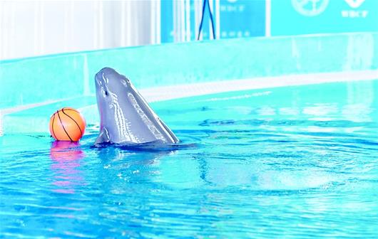 中科院水生所研究员王克雄为大家播放了小江豚F7c的成长视频,它3个月后学习捕鱼的技能;8个月后接受人的触摸。目前,小江豚身体健康、发育正常、行为丰富,日进食量等同于成年江豚,一般一天吃4餐,每顿要吃1公斤的活鱼或冻鱼。