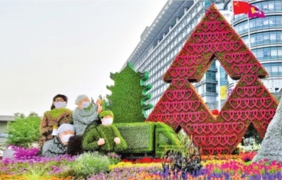 长江日报记者在现场看到,不少行人在花坛旁驻足观赏,拍照留影,提前感受喜庆的节日气氛。