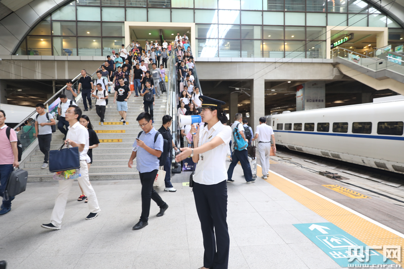 图为:汉口站工作人员服务旅客有序乘车央广网发 通讯员邱晟 摄