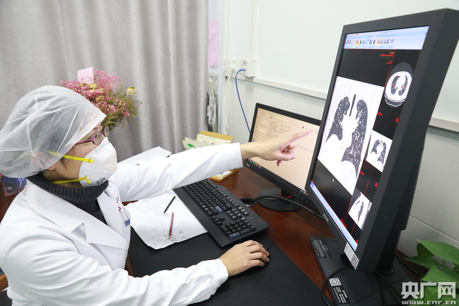 图为张笑春教授在诊断患者肺部影像学特征 央广网发 通讯员高翔 摄