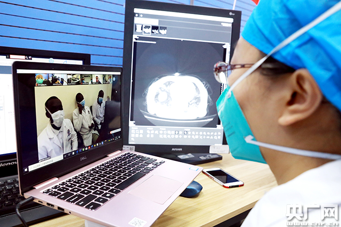 3月22日,在东软医疗搭建的国际远程会诊平台上,武汉大学中南医院医学影像科团队、北京协和医院团队和肯尼亚卫生内阁部长及该国医学专家,相隔万里进行了视频连线,介绍了如何通过CT等检查手段进行筛查、诊断新冠肺炎患者,对疾病的发作情况进行准确判断,帮助肯尼亚及非洲国家快速掌握应对新冠疫情的诊疗方法。