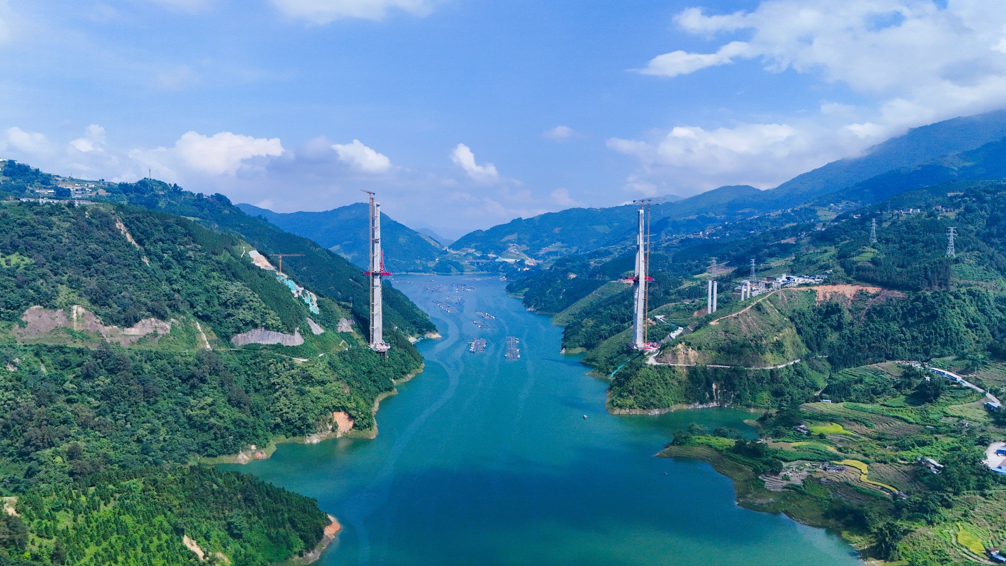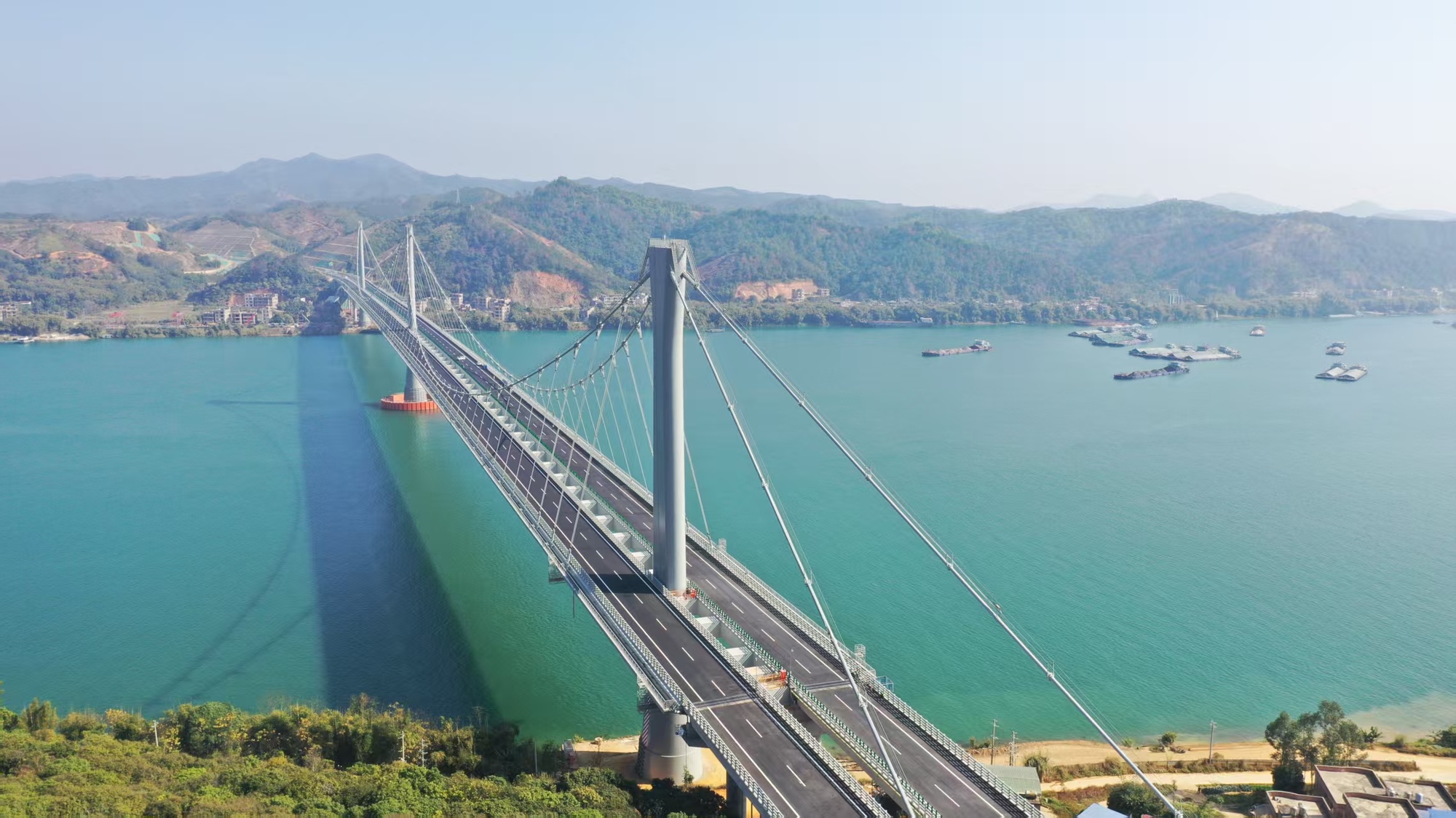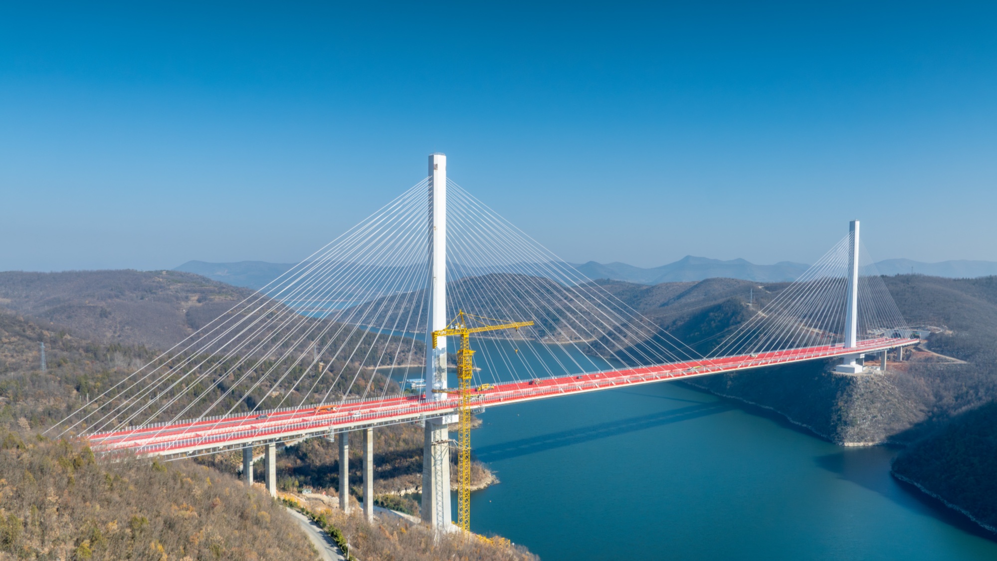 9月4日,由中交二航局承建的云南天麻高速公路马鹿塘特大桥首对斜拉索顺利安装完成。