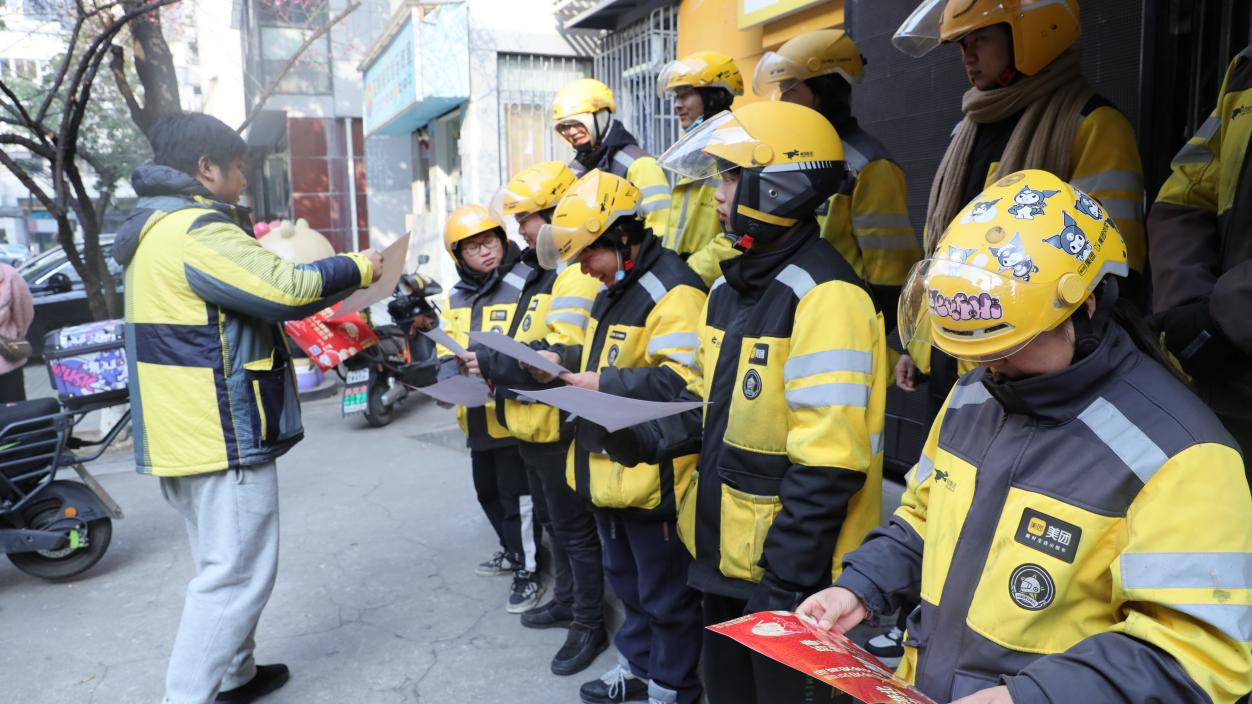 湖北省应急管理厅携手美团外卖,通过武汉地区12个外卖站点1000余名外卖骑手,将3万份印有应急安全宣传标语的红色垫餐纸送至市民手中,助力应急安全知识走进千家万户。