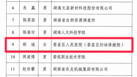 娄星区人民医院1人入选娄底市第十三届青年科技奖
