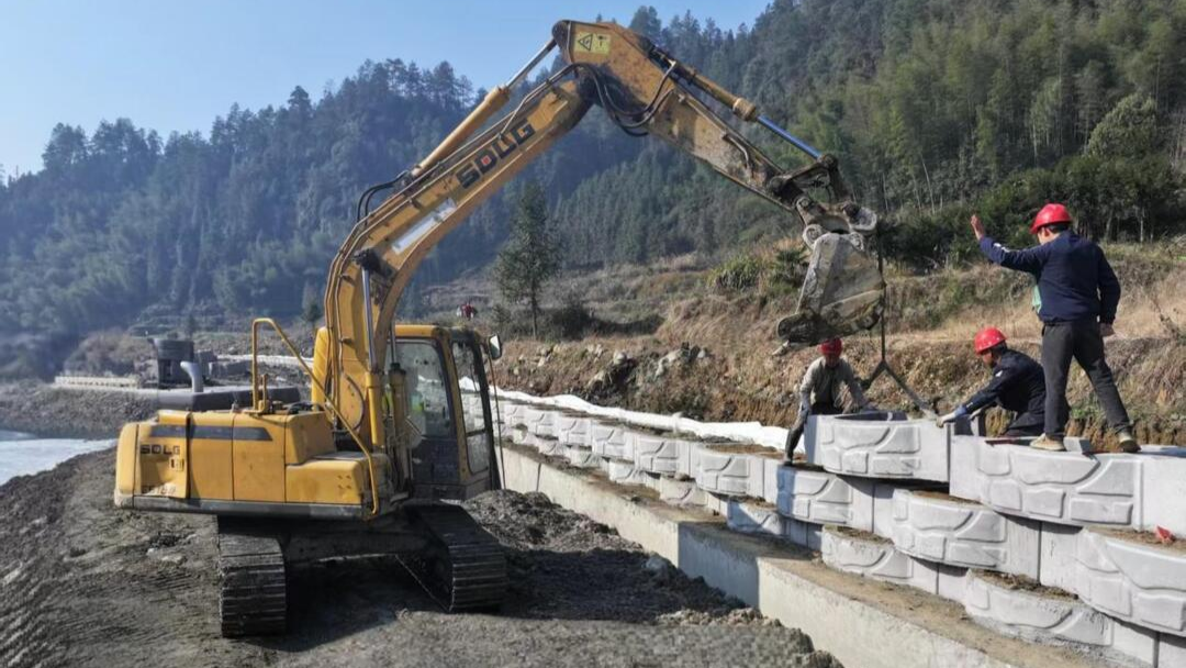 运输车辆往来穿梭,施工人员紧张作业,构成一幅热火朝天的“冬修水利图”。