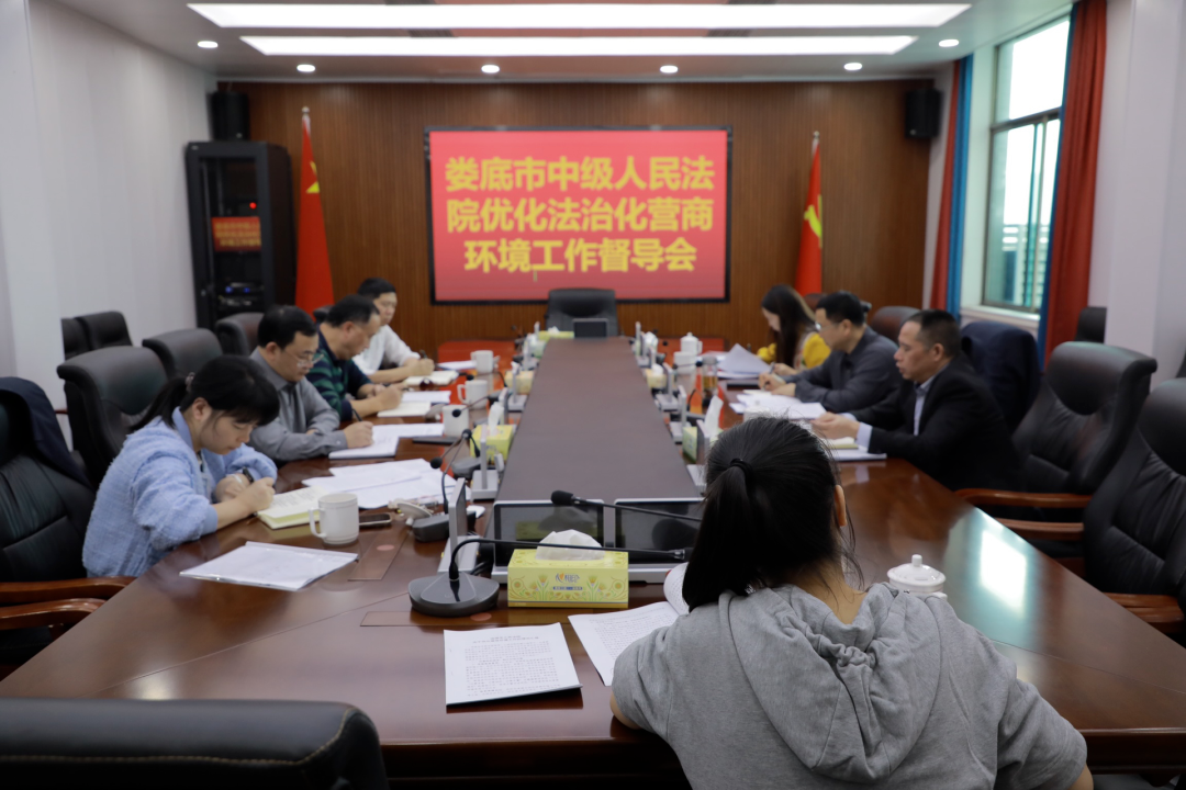 近日,湖南省娄底市中级人民法院党组成员、副院长曾文彬一行到涟源法院督导优化法治化营商环境工作,围绕涟源法院2023年以来优化营商环境取得的成绩及存在的问题困难,与会人员进行积极探讨。