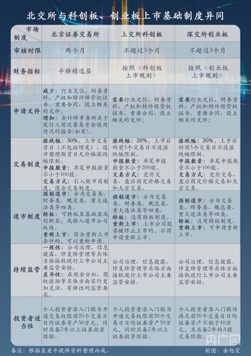 从北交所试行证券发行注册制,到关于基础制度安排的征求意见,律所的律师进行了系统的研究。袁爱平发现,在发行上市的审核时限、财务指标、申请文件、交易退市制度、持续监管和投资者适当性几个方面,北交所与现有实行注册制的科创板和创业板,形成了差异化安排。