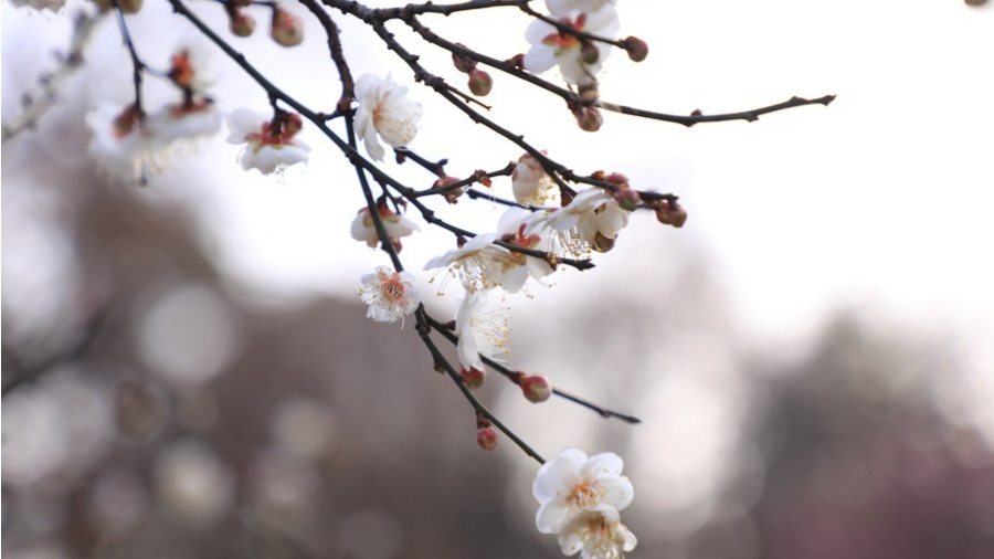 30多个品种的400余株梅花陆续开放,花期预计从1月中旬持续至3月。
