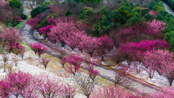 踏雪寻梅!长沙洋湖湿地“梅花隧道”美成诗画