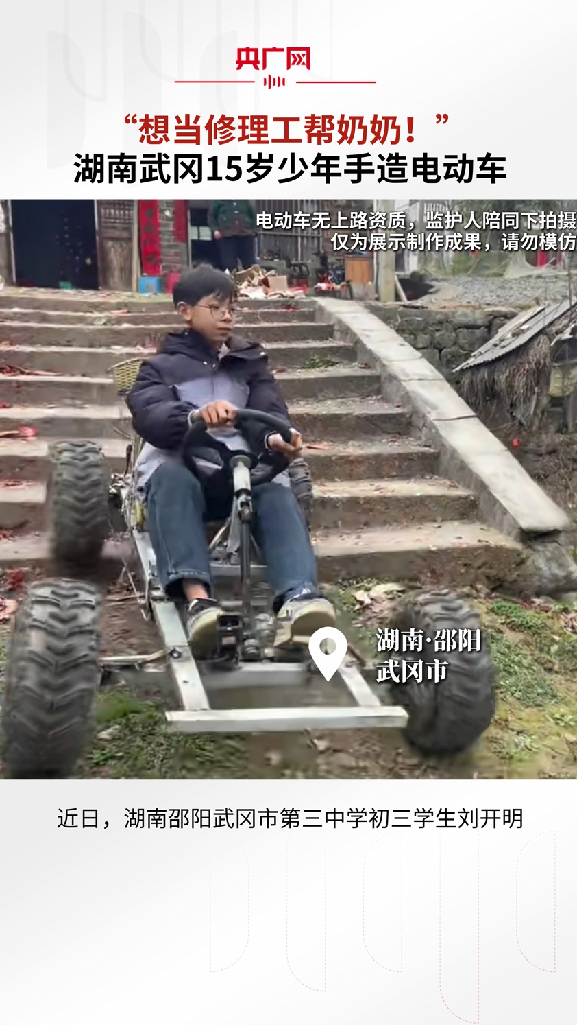 湖南武冈15岁少年手造电动车:“想当修理工帮奶奶!”