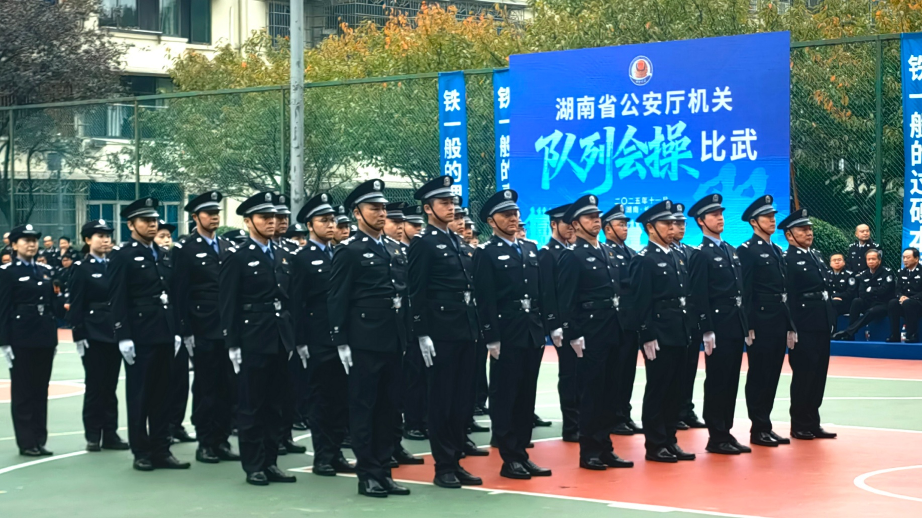 湖南省公安厅机关队列会操比武在省公安厅操场举行。