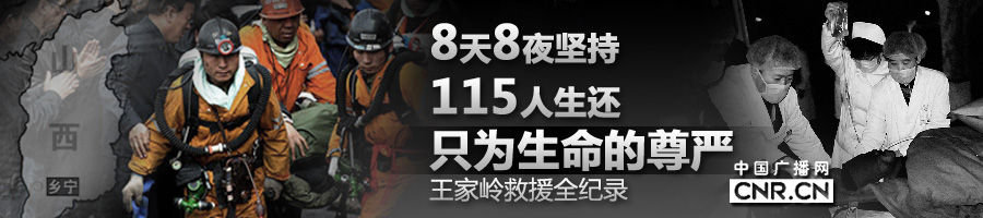 【12:56】国家安监总局局长骆琳在接受采访时表示,王家岭透水事故救援工作创造了两个奇迹: 第一个奇迹就是被困矿工,他们在井下顽强地坚持、坚持、再坚持,度过了8天8夜这样的生命之关,还能得到生存。 第二个奇迹,就是在党中央、国务院的坚强有力、正确的领导下做出的决策部署和实施的决策方案、救援方案十分有效、有力,创造了中国抢险救援史上一个伟大的奇迹。 |