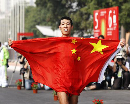 11月21日,拥有47枚金牌的第一“大户”田径要开赛了。首日比赛中,男子竞走、男子链球、女子铅球、女子10000米、男子5000米和女子3000米障碍决出6枚金牌。在上午进行的男子20公里竞走决赛中,中国选手王浩不负众望,摘得本届亚运会田径比赛首枚金牌。 |
