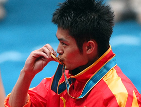 林丹亲吻久违的亚运金牌 |