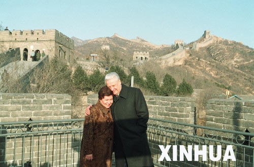 中广网北京4月24日消息 俄罗斯克里姆林宫发言人4月23日说,俄前总统叶利钦已经逝世。这是1992年12月17日,叶利钦和夫人游览北京八达岭长城。