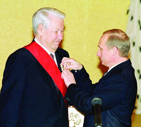 2001年11月30日,普京在克里姆林宫第二次向叶利钦授予“对祖国有功”一级勋章。