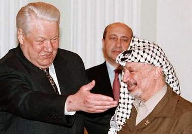 资料图片:叶利钦与阿拉法特在一起