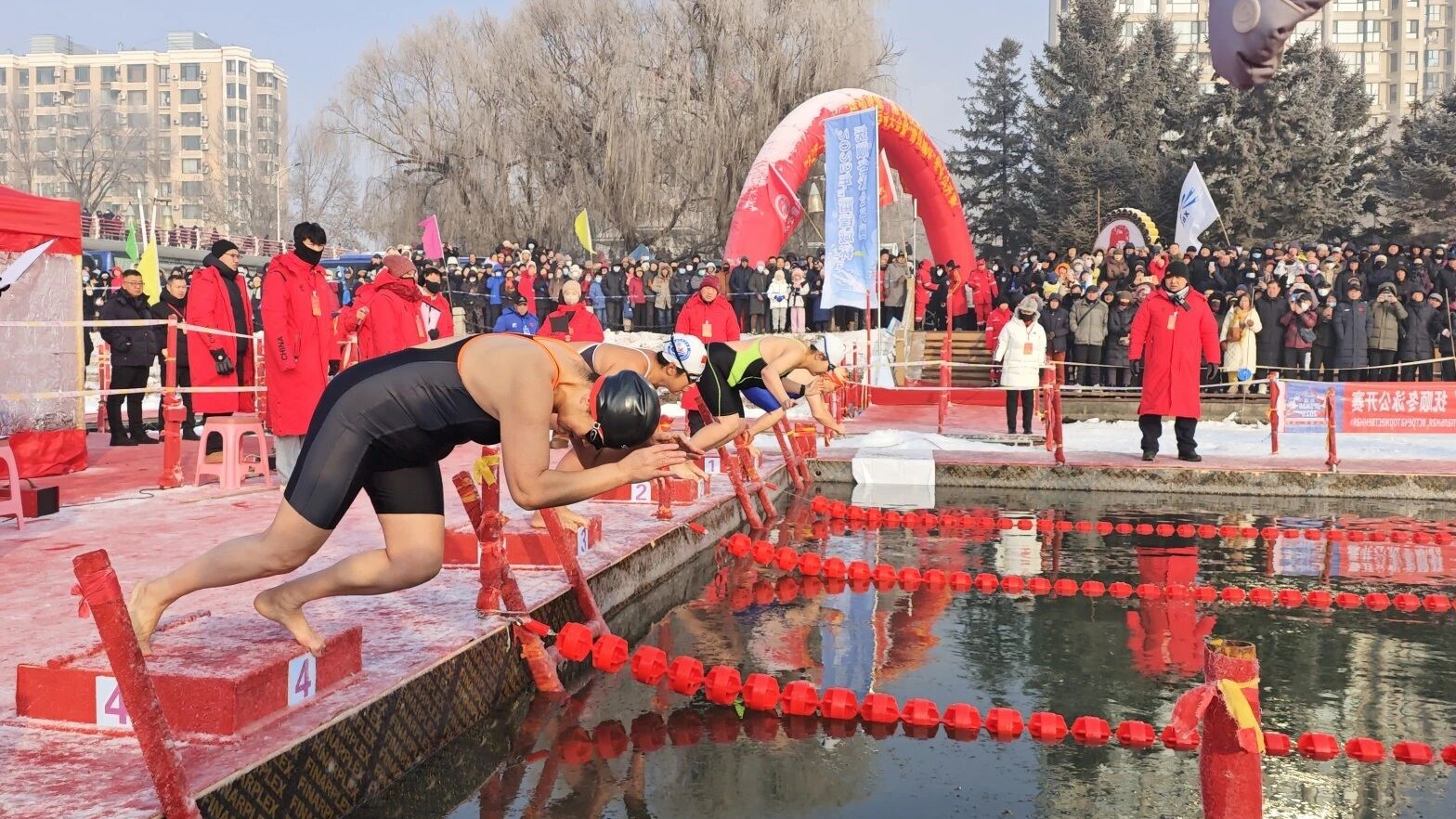 2025—2026年抚顺市冰雪运动大会暨“雷锋城杯”冬泳公开赛开赛。