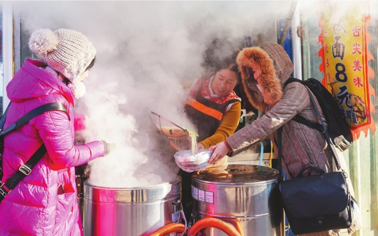 人们边逛边购、边赏边尝,在地道民俗与淳朴民风里,沉浸式感受东北新年的热闹。