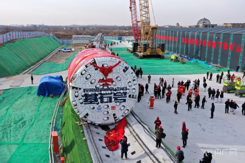 当天始发的“基石号”为国产自主研制,整机全长188米,开挖直径7.03米,总重1200吨,与传统的钻爆法相比,施工综合效率提高三倍以上,在大幅提高项目建设进度的同时,也为国内大型地下铁矿山在建设工艺、技术装备和成本管控等方面提供新思路、新方案。